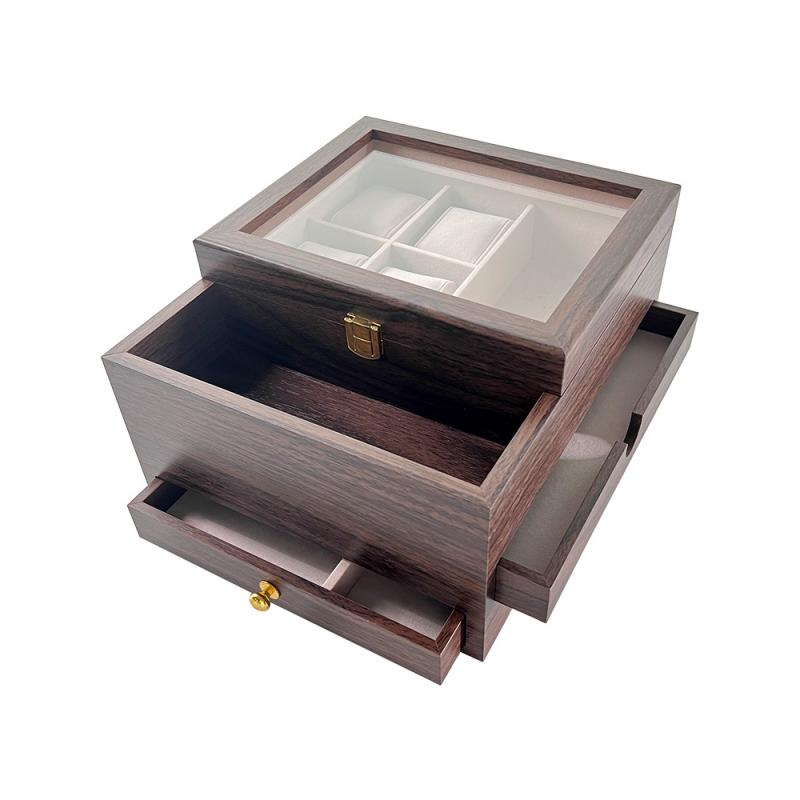 صندوق منظم المجوهرات الخشبي المخصص يوفر تصميم عينة مجانية، وإثبات سريع، وإنتاج سريع، وضمان الجودة